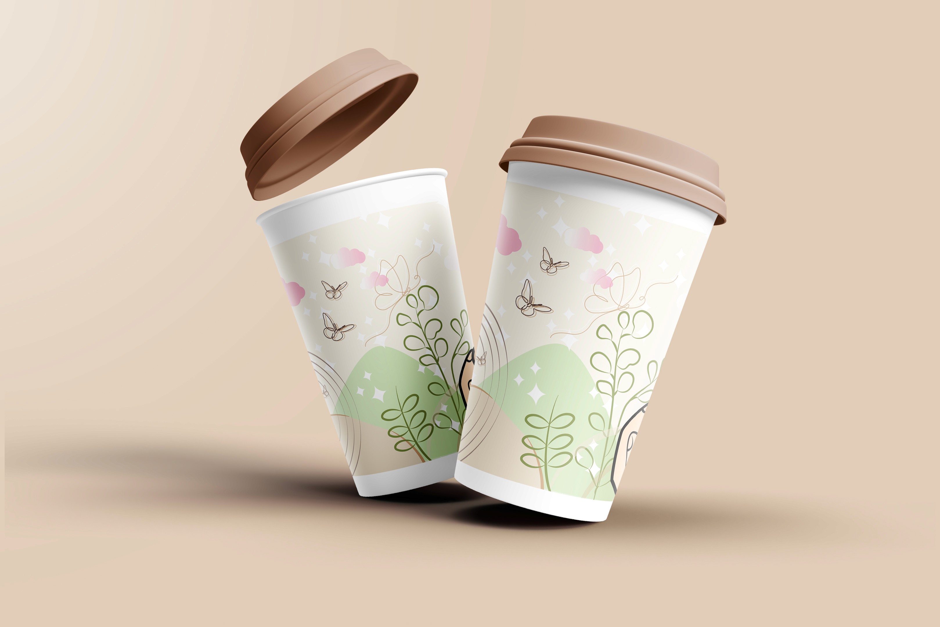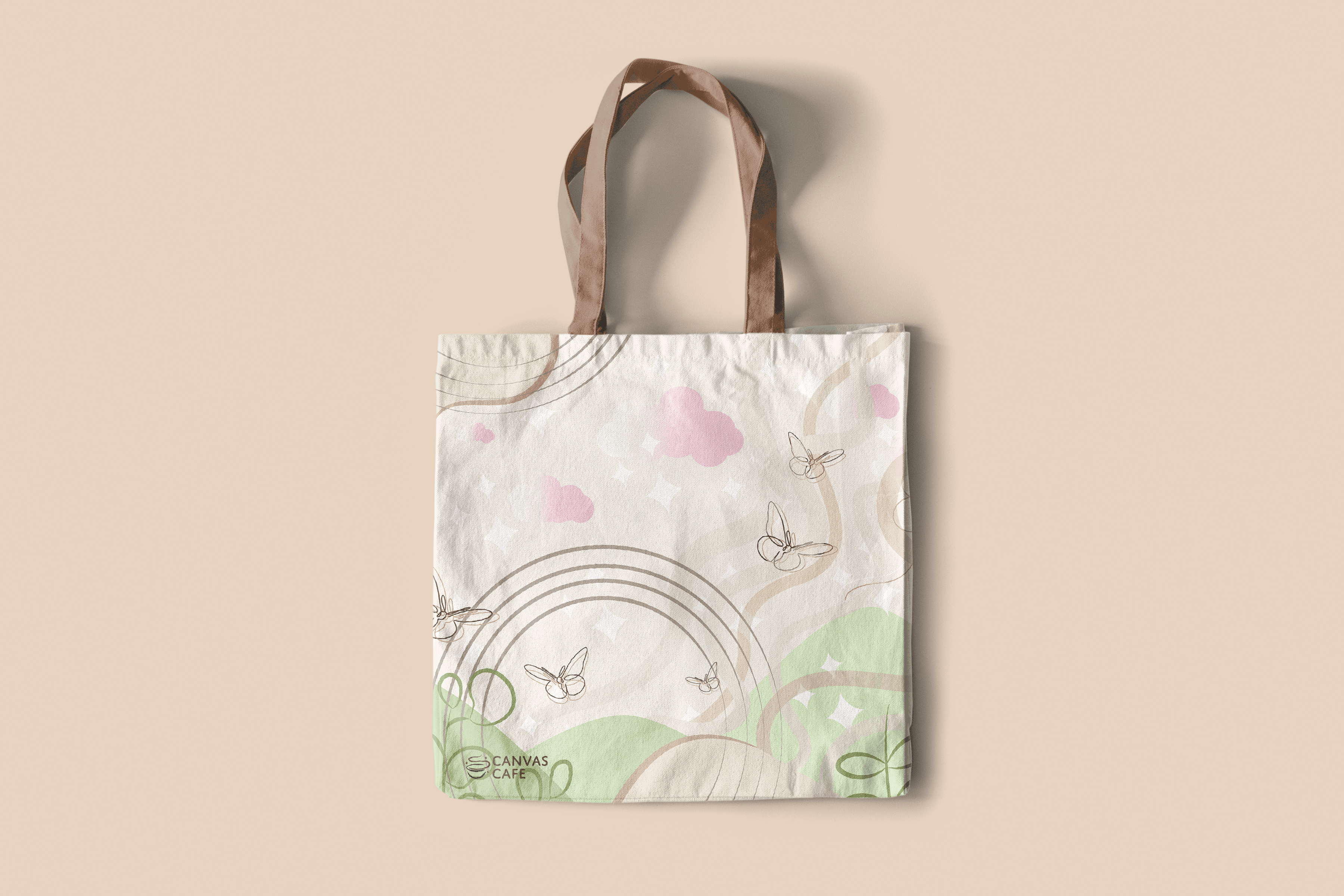 An on-campus café branding campaign for students, using calming colors and clean visuals to create a relaxed, welcoming atmosphere.